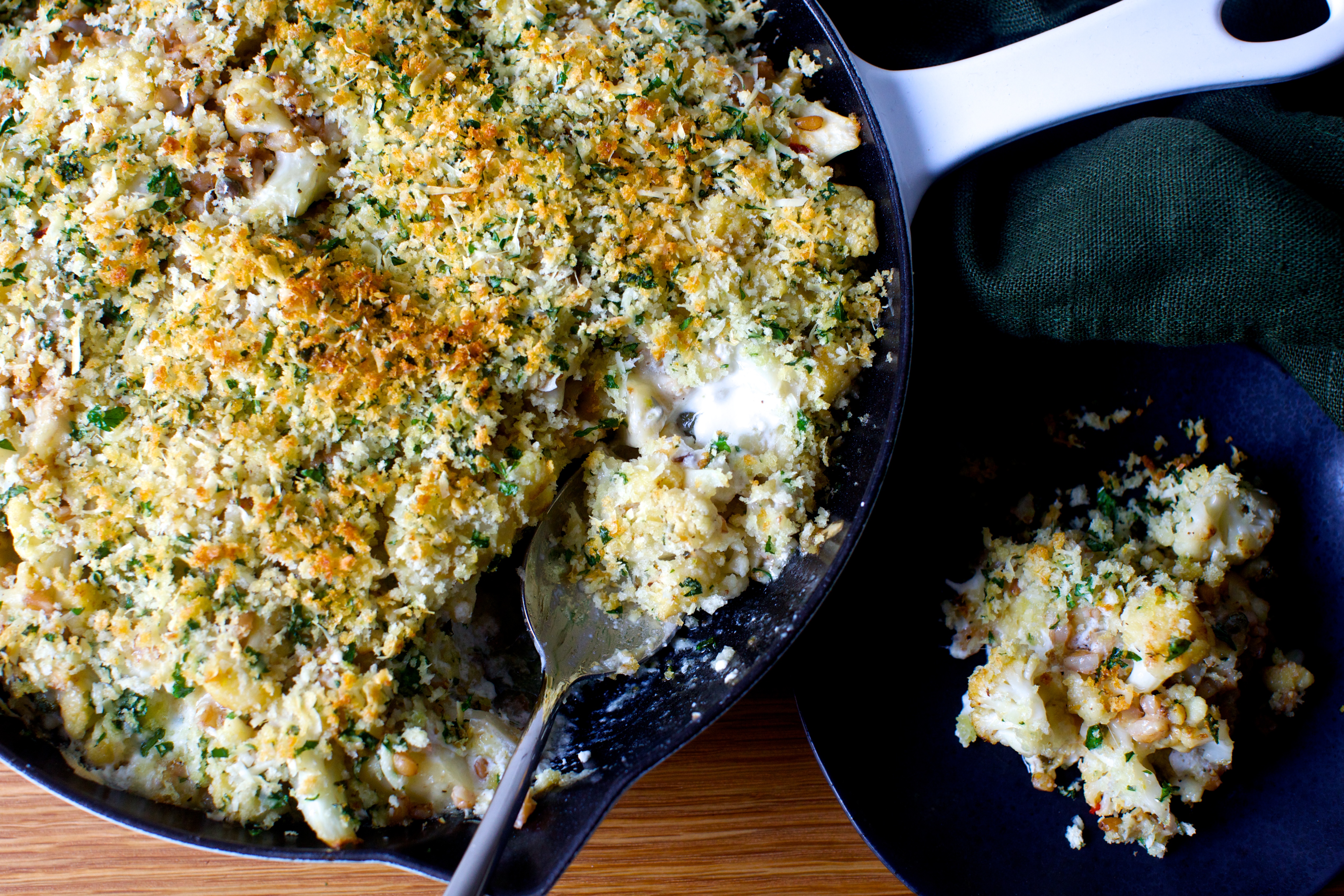 crusty baked cauliflower and farro