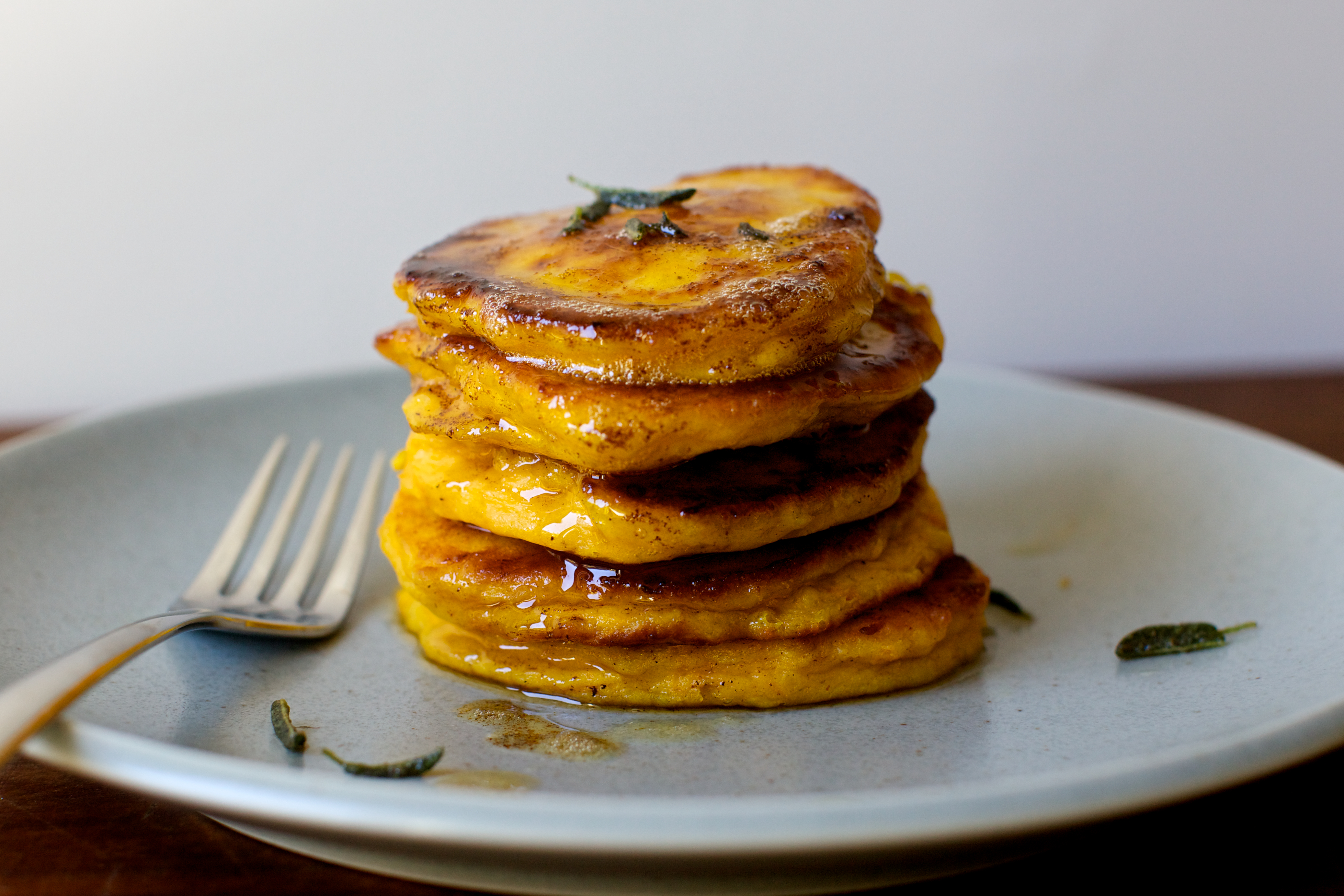 winter squash pancakes with crispy sage and brown butter
