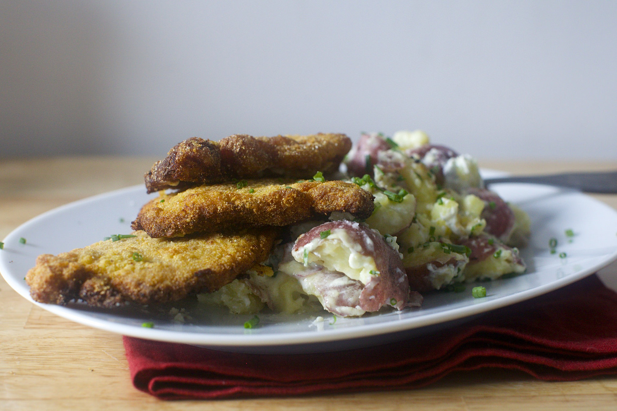 Anson Mills, and if not, at least the cornmeal should be fresh from a gristmill. Your tomatoes should be home-canned, or at the very least, San Marzano. Your pork should be from a heritage pig, your buttermilk and goat cheese should come from a local farm, as should your Red Bliss potatoes; this is your