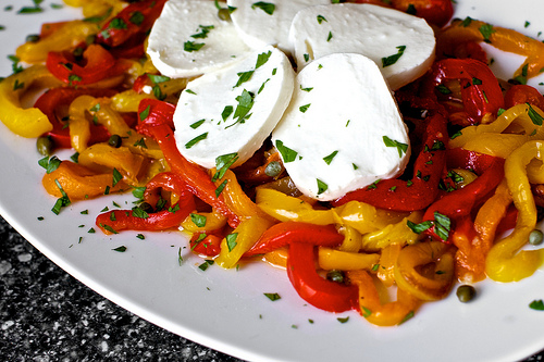 roasted peppers with capers and mozzarella