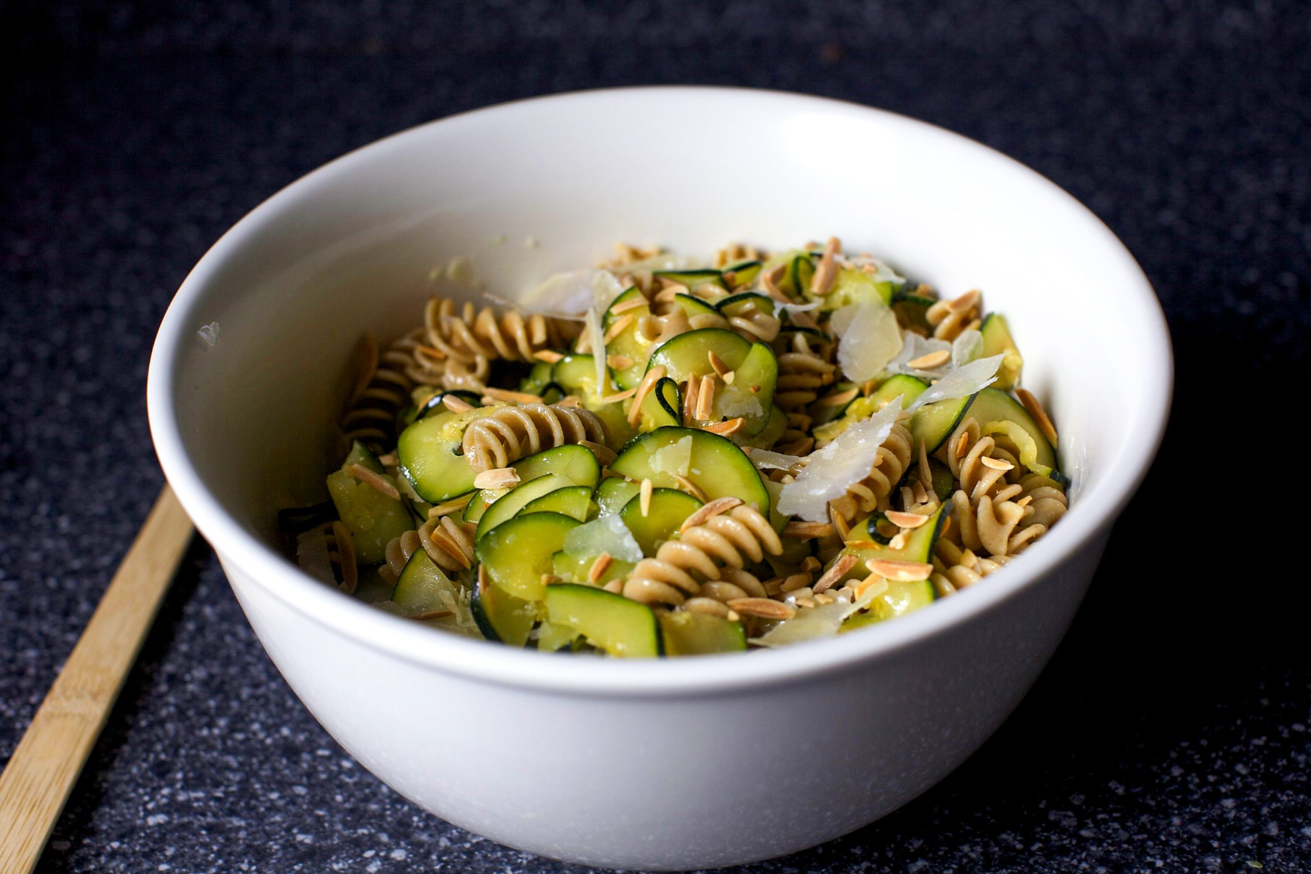 zucchini and almond pasta salad